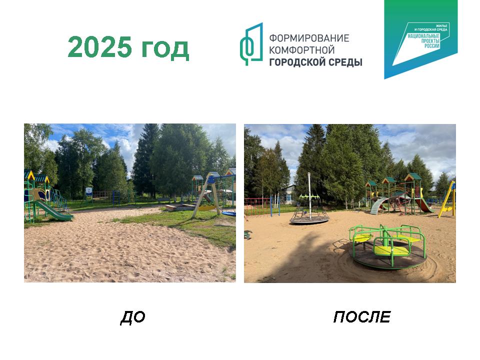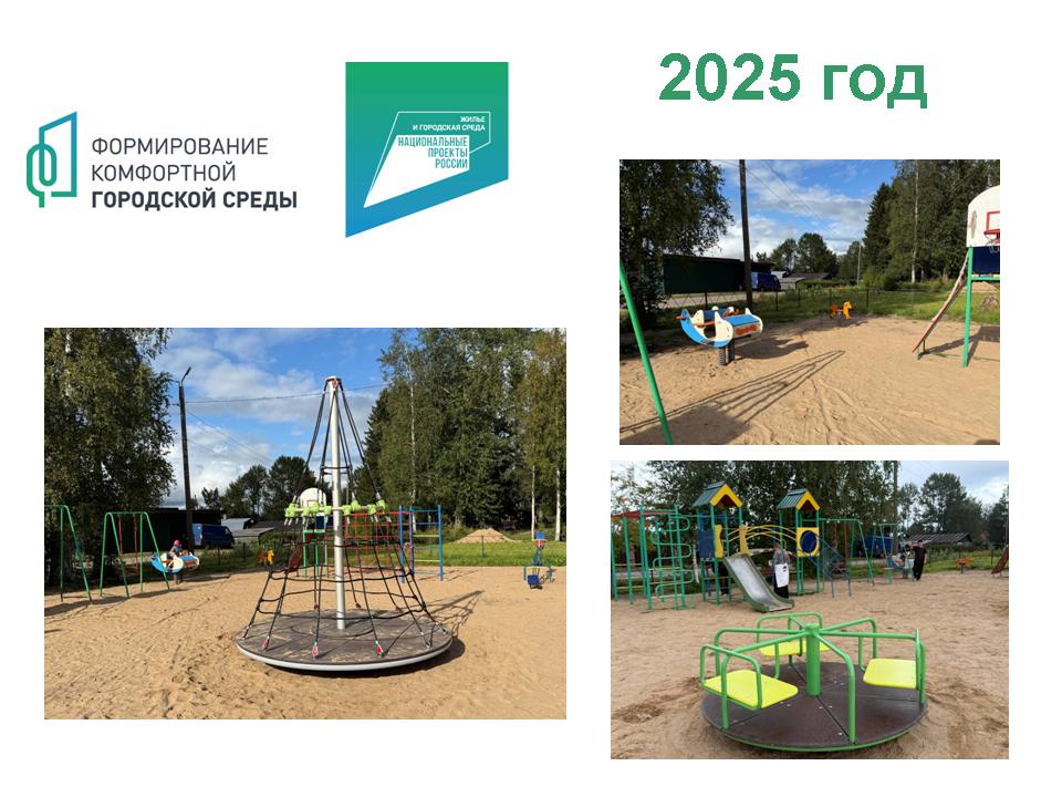 1. с. Видлица, ул. Советская «Зона семейного отдыха» (3 этап). Выполнены работы по ремонту основания (планировка, установка бордюров, отсыпка песком). Приобретено и установлено новое детское игровое оборудование. Общая стоимость выполненных работ: 1 148 712,14 руб. (ФБ – 1 072 853,79 р.; РК – 10 836,90 р.; МО – 65 021,44 р.)